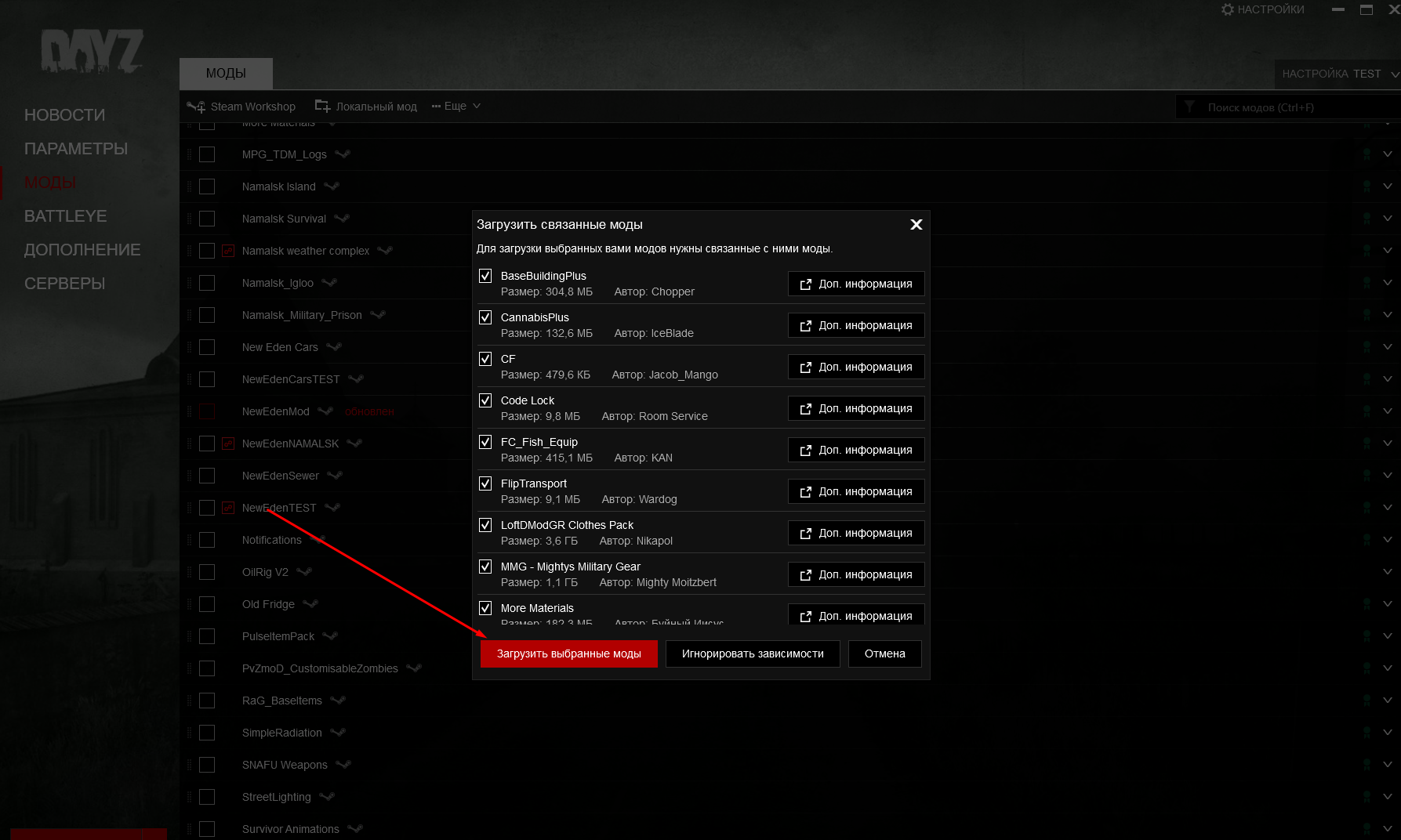 Далее в открывшемся окне нажмите «Загрузить выбранные моды»